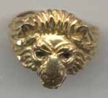 Don found this ring in April of 1999. It is one of his neatest gold ring finds. It is a 14k gold ring with little emeralds for the lions eyes. Don Lieurance