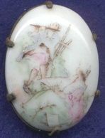 Tom found this 1920's era brooch in Fossil, Oregon. It depicts a man playing a flute for a woman. It was found in February, 2003 with a Minelab Explorer XS .Tom Smith